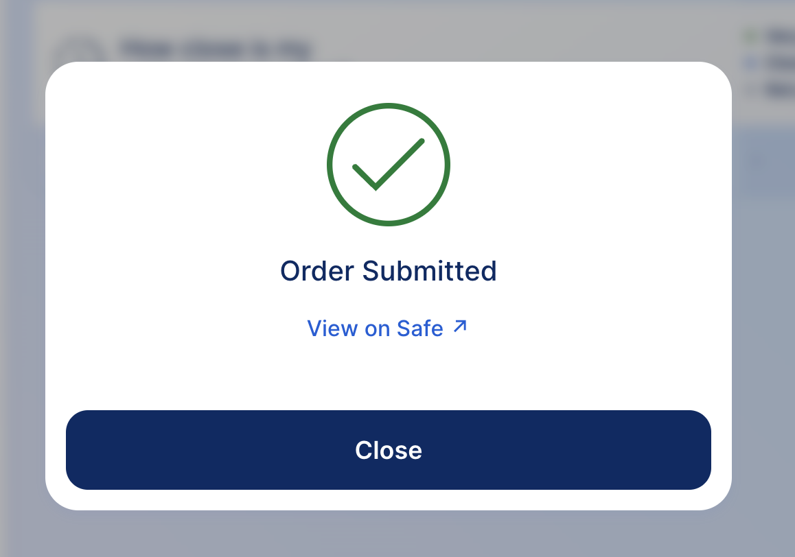 Check all the details of your order, including price protection and limit price. Once you have reviewed the details, sign the transaction in your Safe interface.